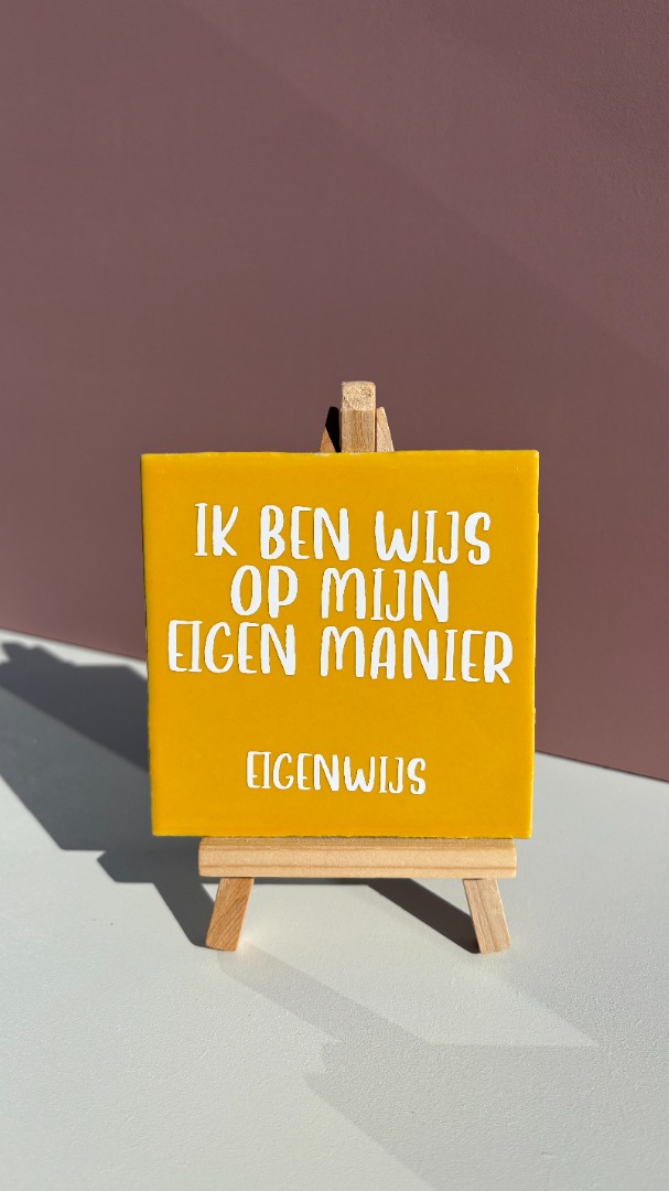 Tegeltje met tekst: Ik ben wijs op mijn eigen manier. Eigenwijs